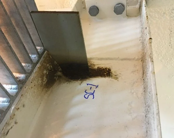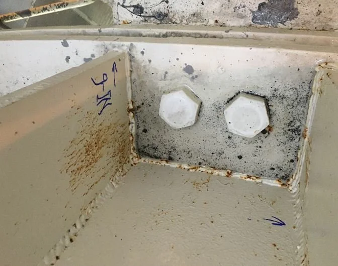 In late 2019, the A1 thrust drum underwent a full recoating in efforts to revamp its aging and deteriorating corrosion protection. One year later, NASA personnel spotted several concerning areas of the new paint flaking, peeling and exhibiting rust bleed through. NASA and supporting contractors then tasked our lead inspector to investigate the cause of the premature coating failures. Upon further inspection, and with the use of destructive testing techniques like Pull-Off Adhesion tests, the team found the failures almost all resulted from inadequate surface preparation on the part of the previous coating contractor. A majority of adhesion test pieces revealed residual rust on the inside surface, indicating the previous coating application was over rusted surfaces. The recommended remediation to NASA was to perform localized coating repairs.